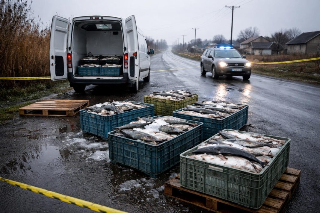 O acțiune comună a Gărzii Naționale de Mediu (GNM) și a Inspectoratului de Poliție Județean Tulcea a întrerupt, în dimineața zilei de 1 aprilie 2026, un transport suspect de pește la intrarea în județul Tulcea, în localitatea Cataloi. La controlul efectuat de comisarii GNM, sprijiniți de polițiști, au fost descoperite aproximativ 500 de kilograme de somn, fără documente de proveniență.